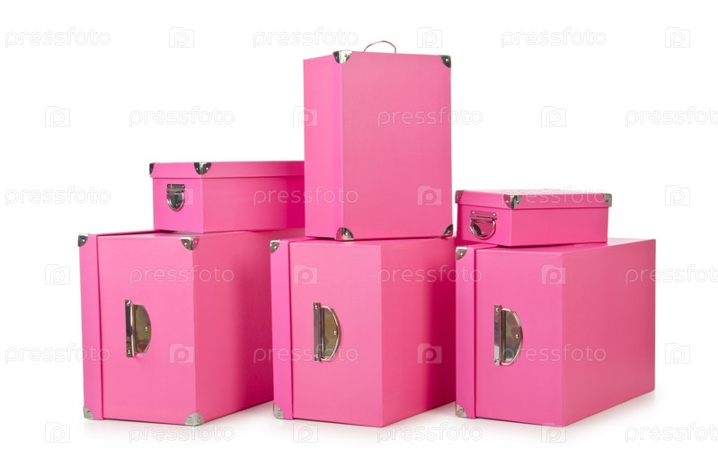 Розовые коробки на белом фоне