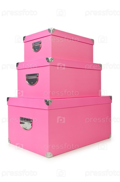 Розовые коробки на белом фоне