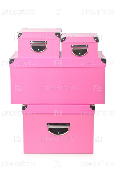 Розовые коробки на белом фоне