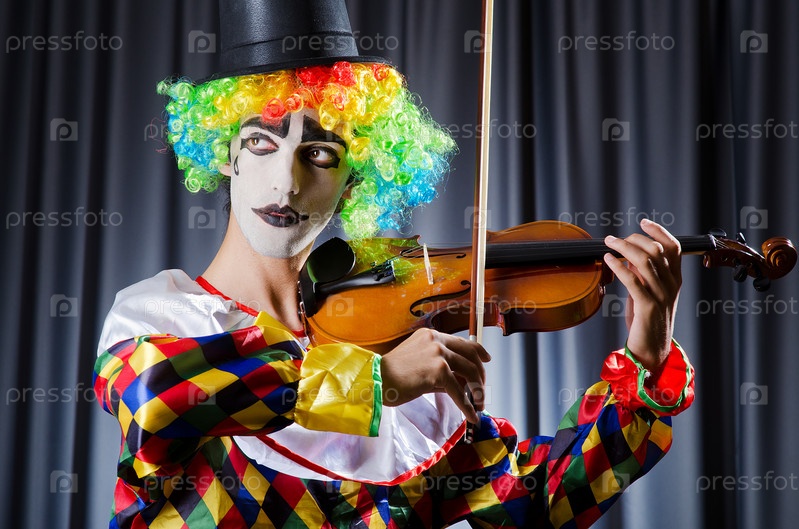 Клоун играет на скрипке