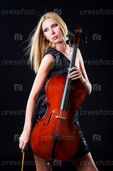Портрет женщины с виолончелью на темном фоне