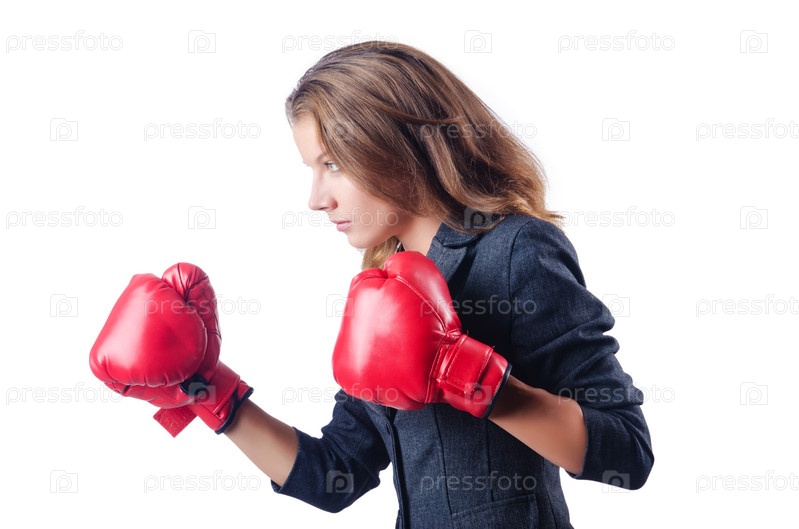 Злая бизнес-леди в боксерских перчатках