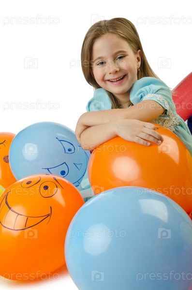 Маленькая девочка с шарами на белом фоне