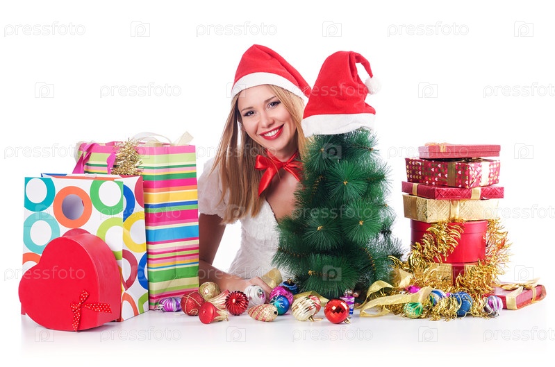 Молодая женщина с рождественскими покупками