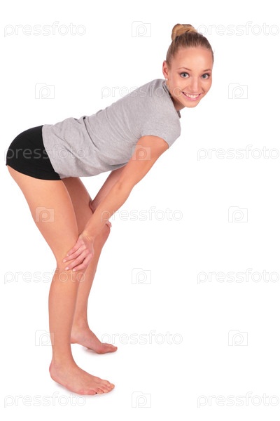 Девушка в спортивной форме на белом фоне