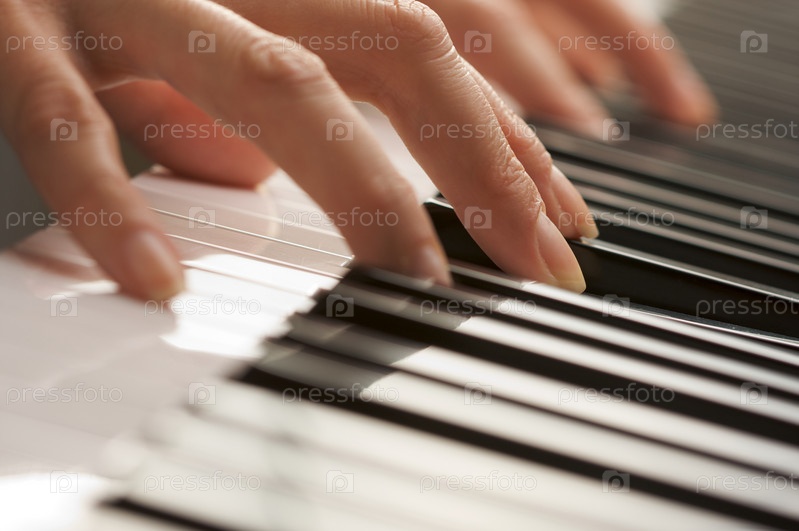 Женские пальцы на клавишах цифрового пианино