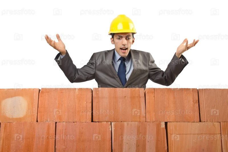 Бизнесмен рядом с кирпичной стеной
