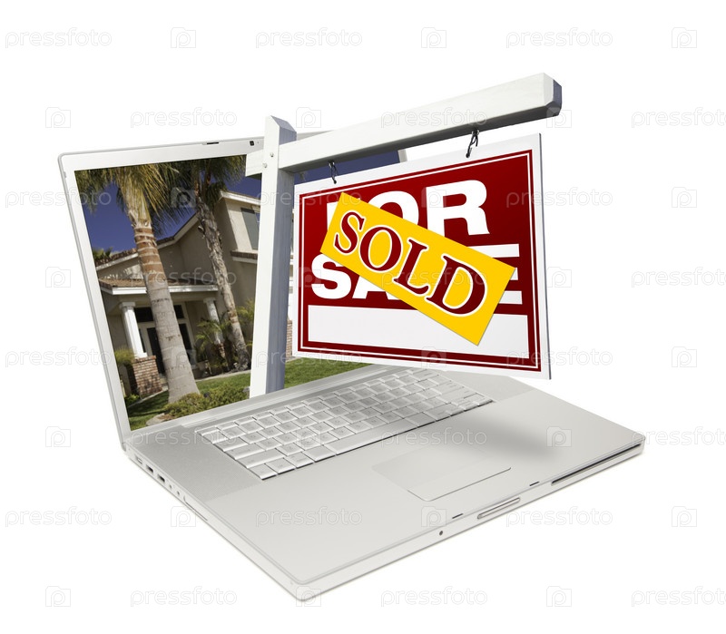 Ноутбук с вывеской продажи дома