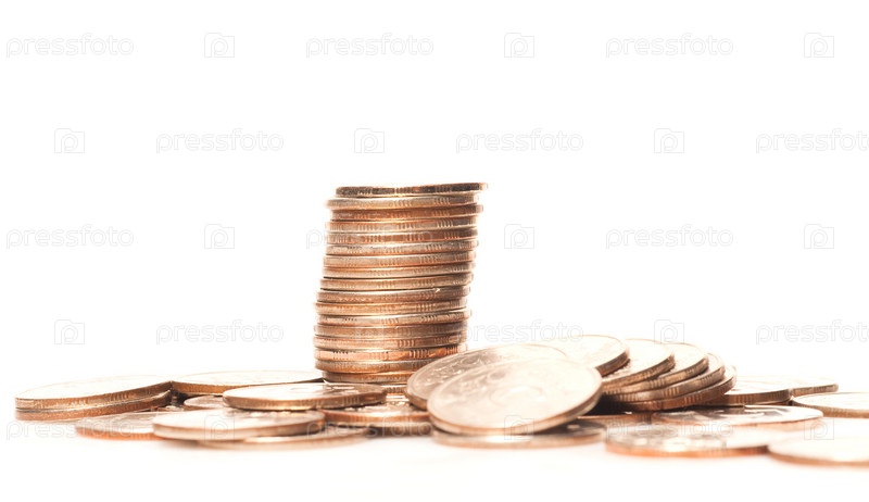 Стопка монет на белом фоне