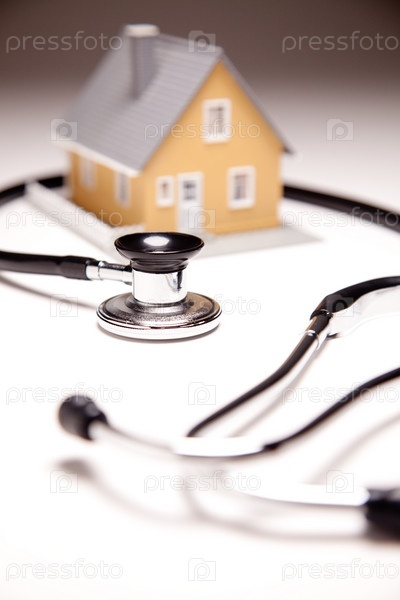 Модель дома на фоне стетоскопа