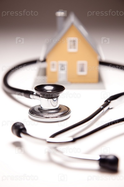 Модель дома на фоне стетоскопа