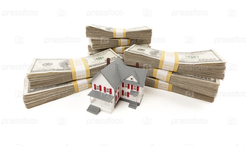 Маленький дом со стопками стодолларовых купюр
