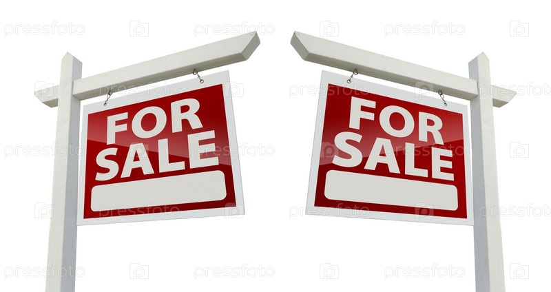 Пара знаков о продаже недвижимости на белом фоне