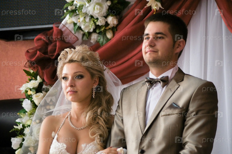 Молодая супружеская пара в день свадьбы