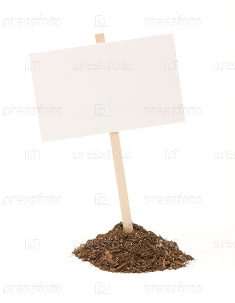 Пустой белый знак в куче грязи на белом фоне