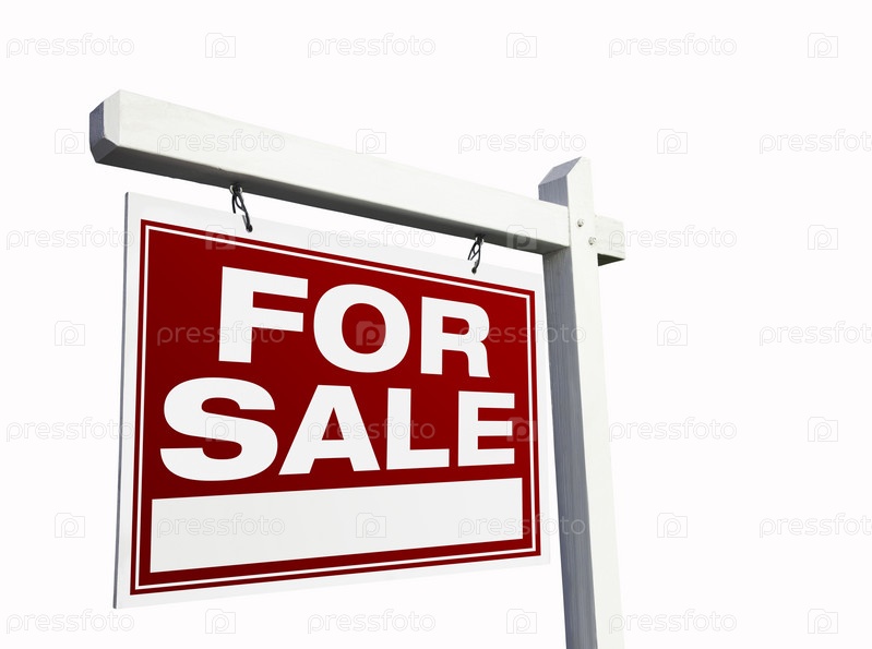 Красный знак продажи недвижимости на белом фоне
