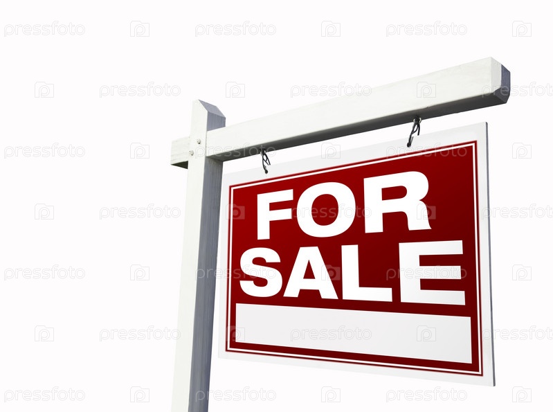 Красный знак продажи недвижимости на белом фоне