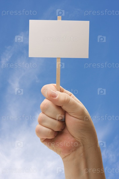 Пустой знак в кулаке на фоне неба