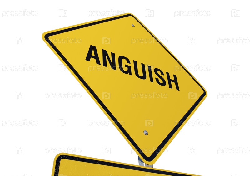 Желтый дорожный знак со словом Anguish