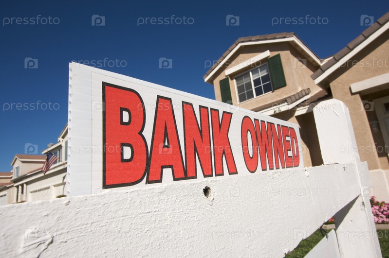 Знак "Собственность банка" и дом с американским флагом