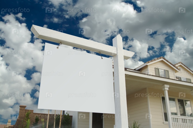 Пустой знак о продаже недвижимости и новый дом