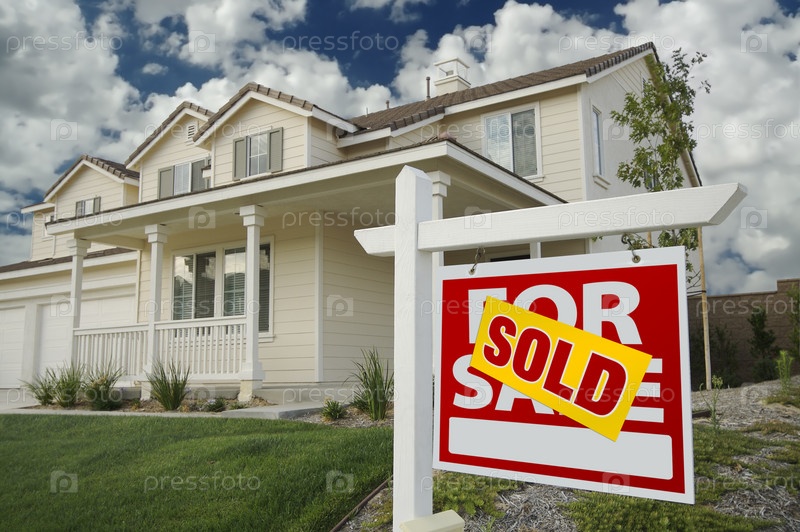 Знак ПРОДАНО перед новым домом