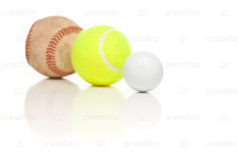 Бейсбольный, теннисный мячи и мяч для гольфа на белом фоне