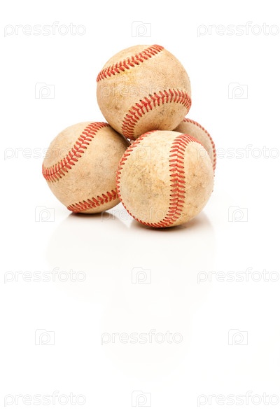 Четыре бейсбольных мяча на белом фоне