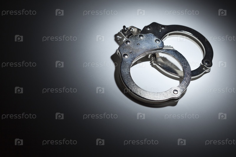 Пара наручников под лучом света