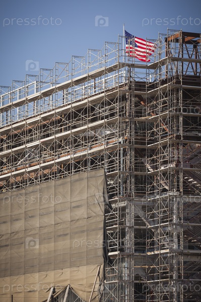Американский флаг на вершине строящегося здания