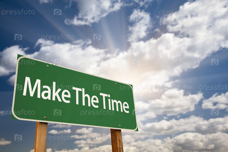 Зеленый дорожный знак с надписью "Сделай время"