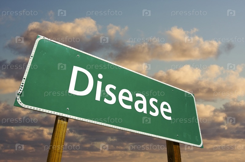 Зеленый дорожный знак с надписью Disease