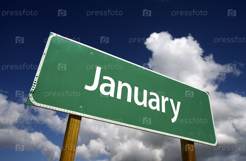 Зеленый дорожный знак ЯНВАРЬ