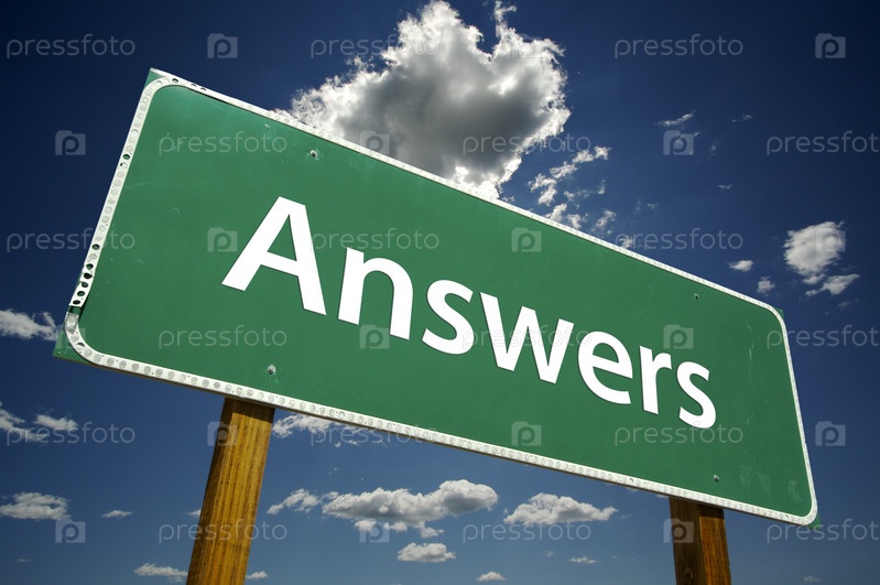 Зеленый дорожный знак с надписью Answers