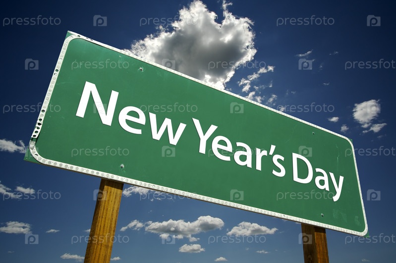Зеленый дорожный знак с надписью "С Новым Годом!"