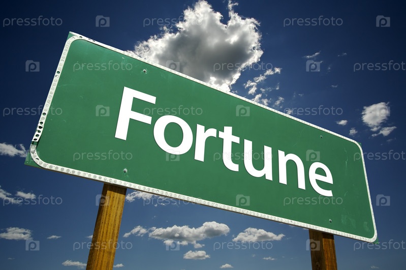 Зеленый дорожный знак с надписью Fortune