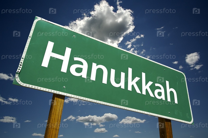 Зеленый дорожный знак с надписью Ханука