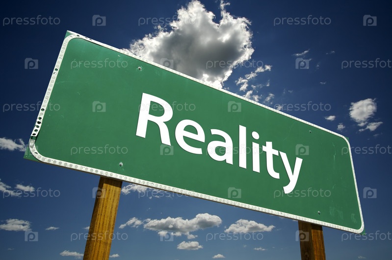 Зеленый дорожный знак с надписью "реальность"