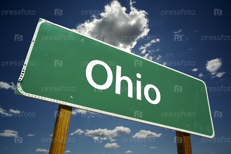 Зеленый дорожный знак с надписью "Огайо"
