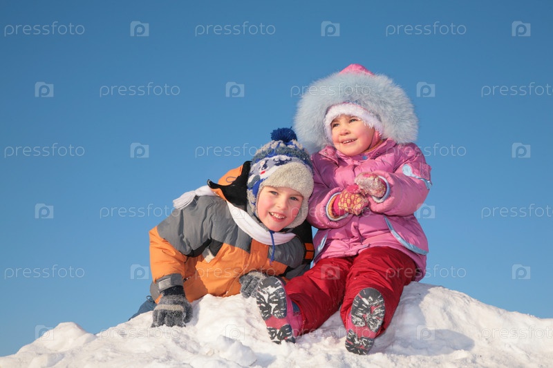 Двое детей на вершине сугроба
