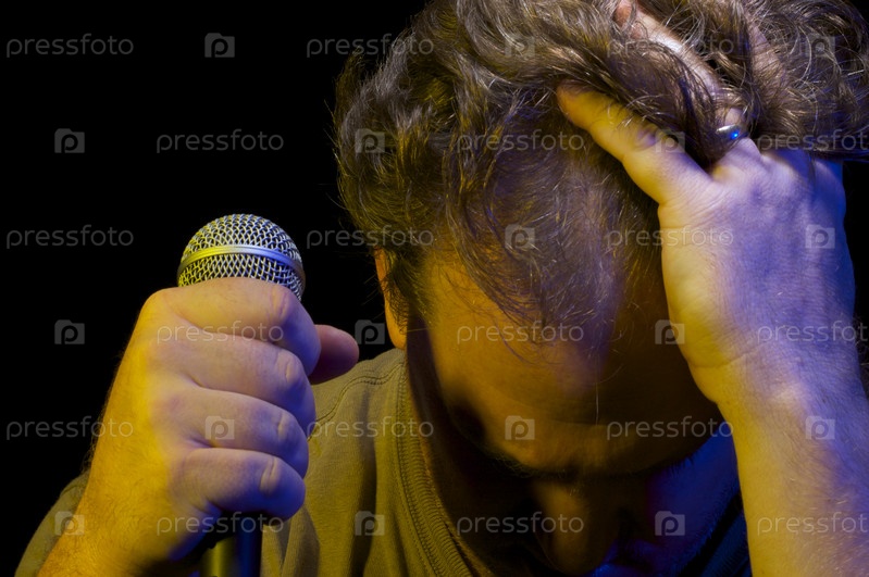 Страстный вокалист с микрофоном