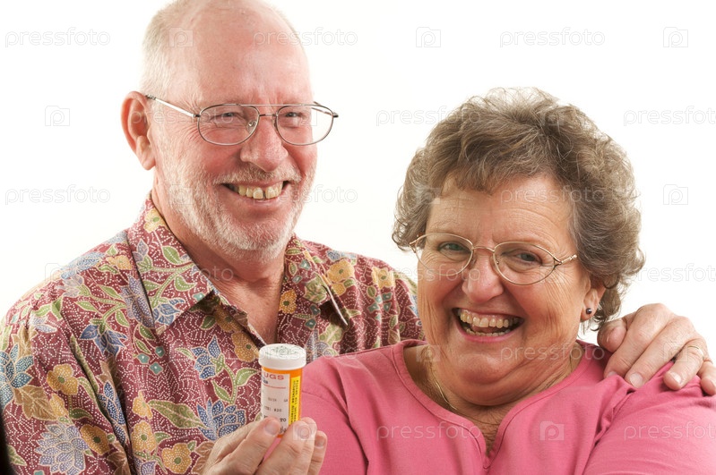 Пожилая пара с баночкой таблеток