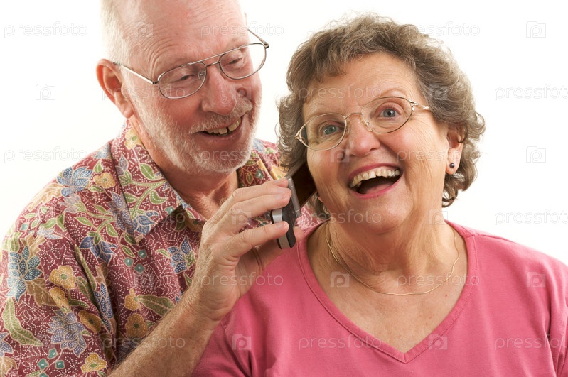 Пожилая пара с сотовым телефоном