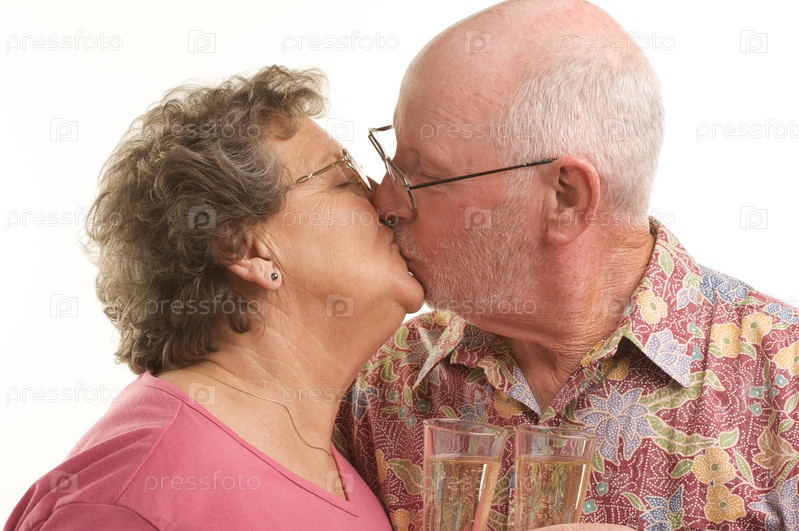 Счастливая целующаяся пожилая пара