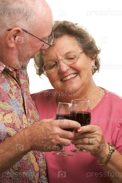 Счастливая пожилая пара чокается бокалами