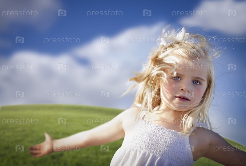 Маленькая девочка на фоне луга