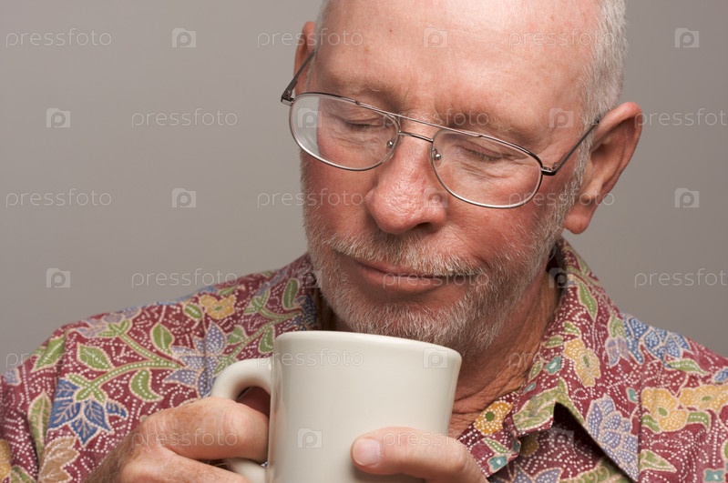 Пожилой мужчина пьет кофе