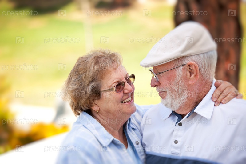 Счастливая пожилая пара в парке