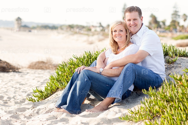 Привлекательная европейская пара отдыхает на пляже
