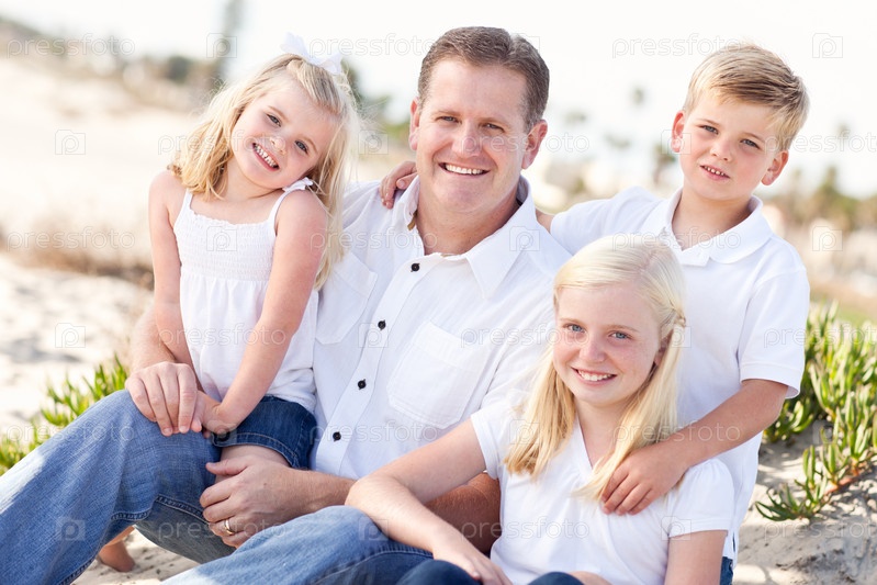 Отец и его милые дети на пляже